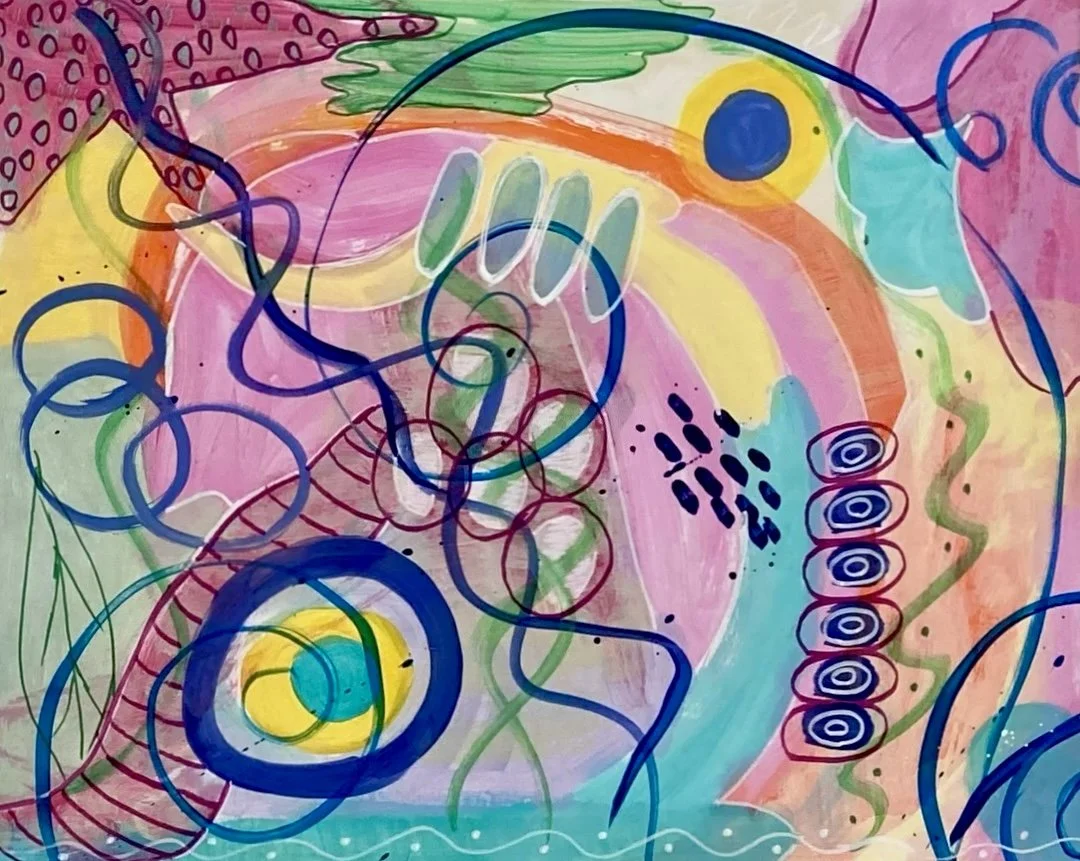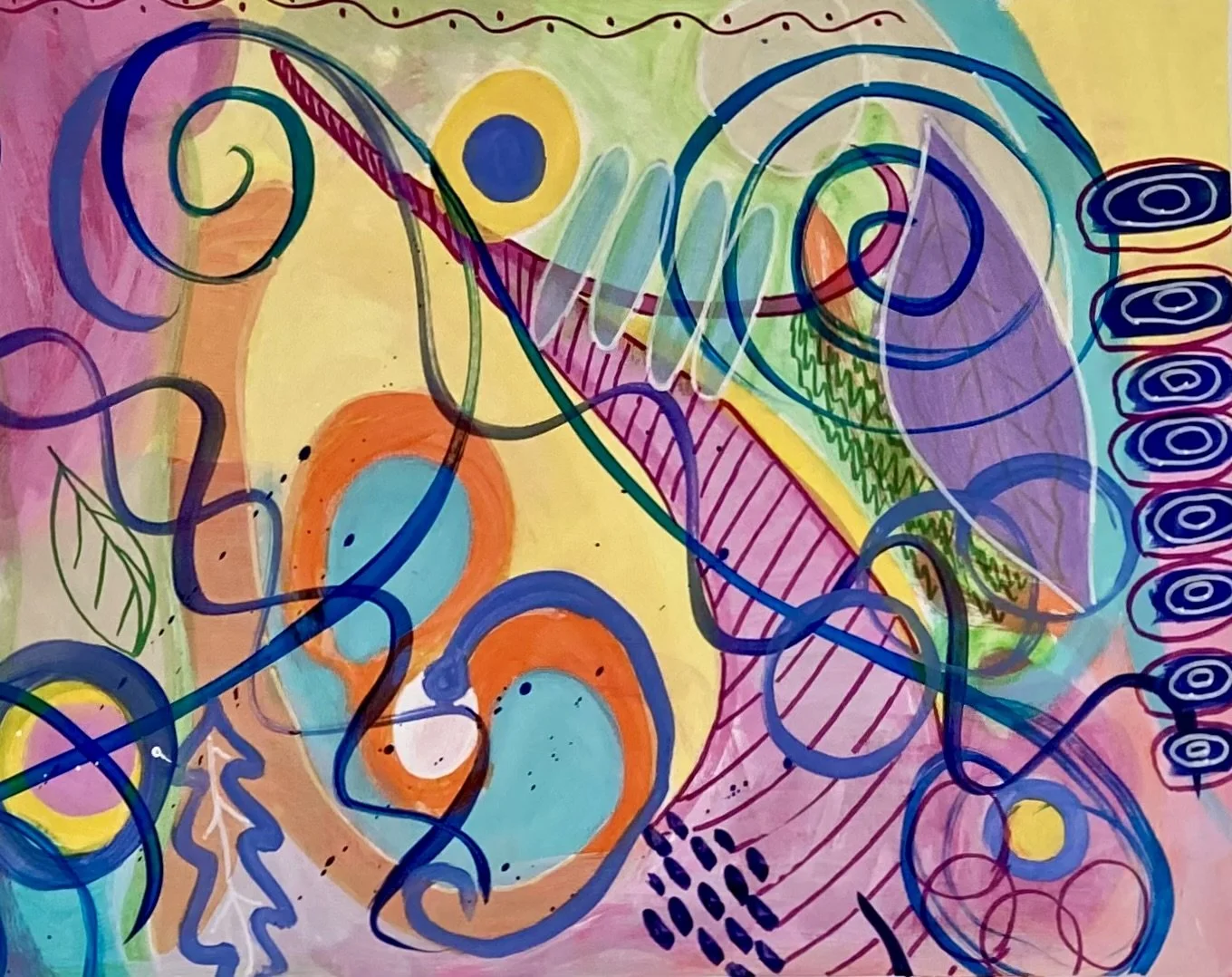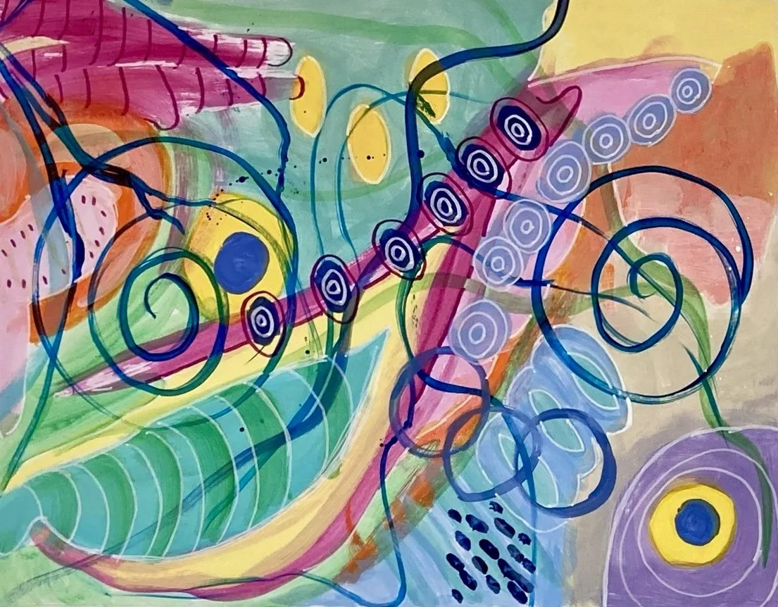 Life Essence - Life's energies in color. Multicolor abstract art with curvilinear forms. Acrylic on canvas. 16x20 inches. Available in print.