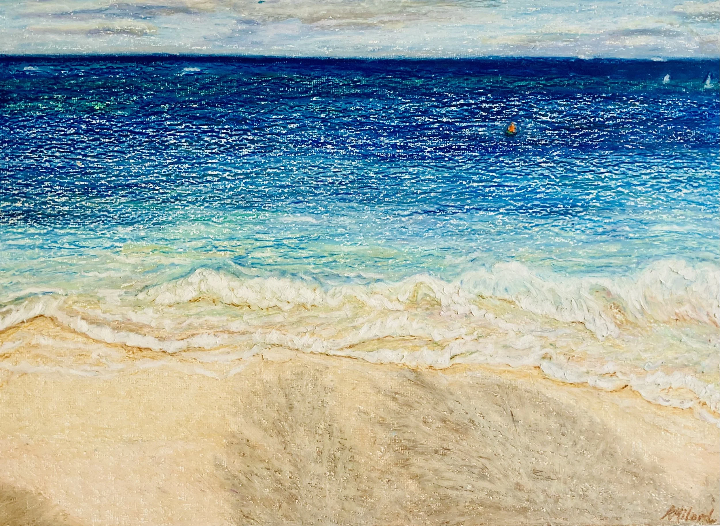 Caribbean Seascape. Oil pastels on canvas sheet - 10x14 inches. Available in print.