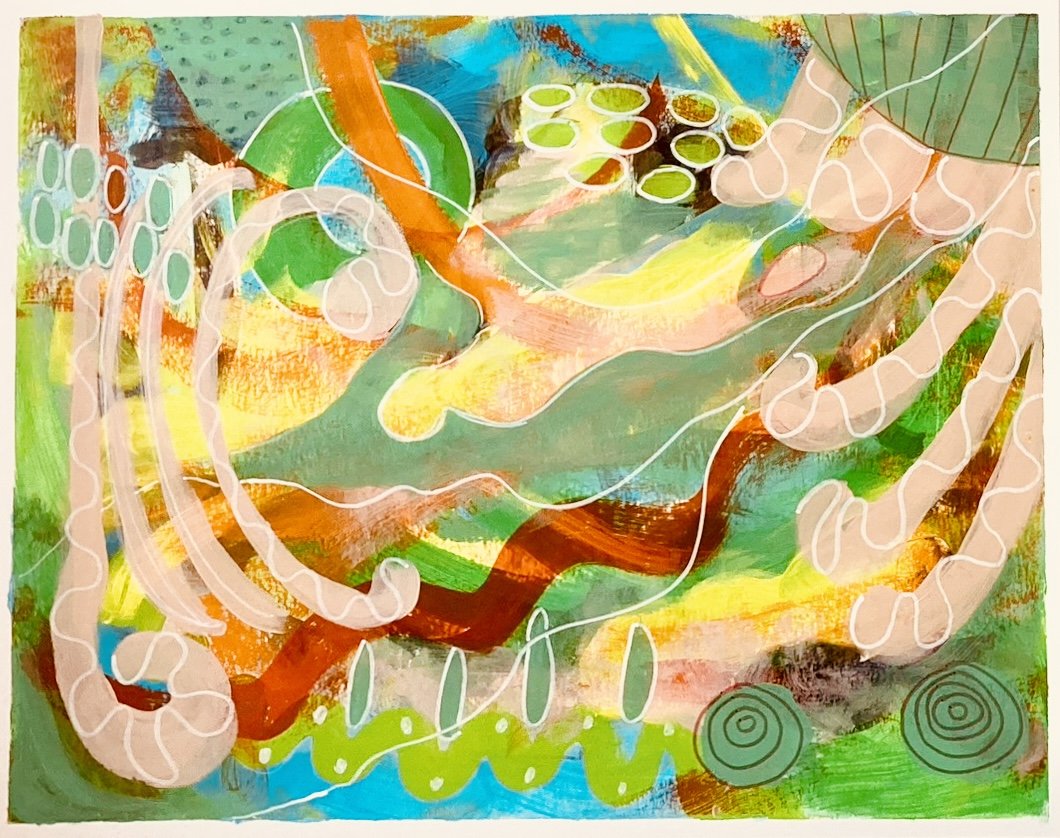 Organic Shapes. Exploring the idea of curvilinear flora with an orange palette. Acrylic on canvas. 12x16 inches. Also available in print.
