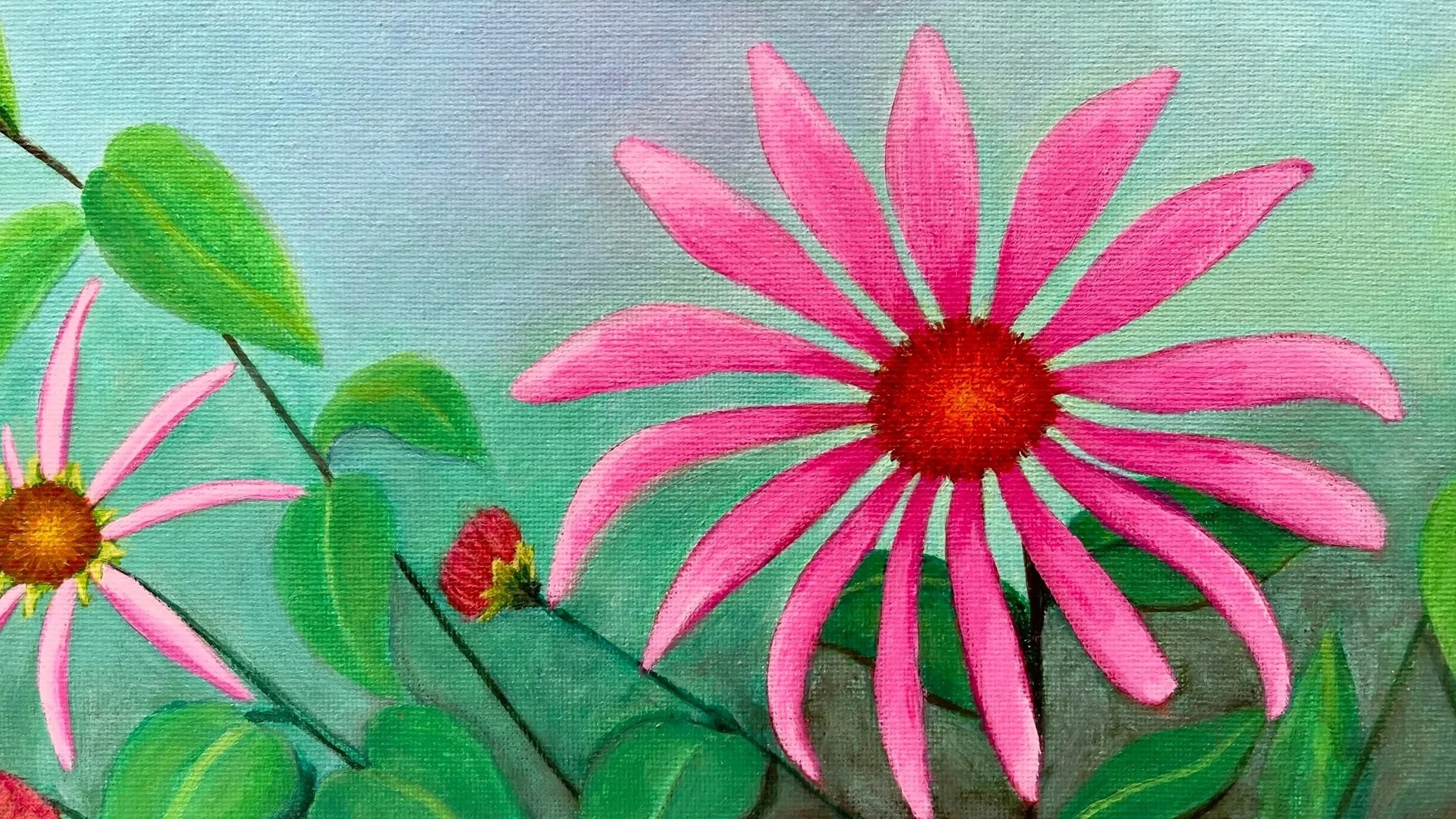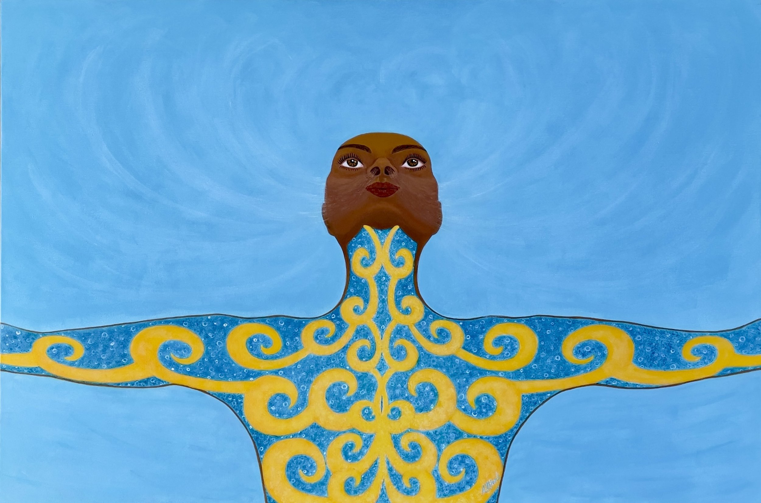 A reflection on the breath and its connection to life energy, this painting invites you to pause, let go and reconnect with your inner peace. My artwork bridges realism and abstraction — using simplified forms, bold color, and symbolism to convey emotion and connection.